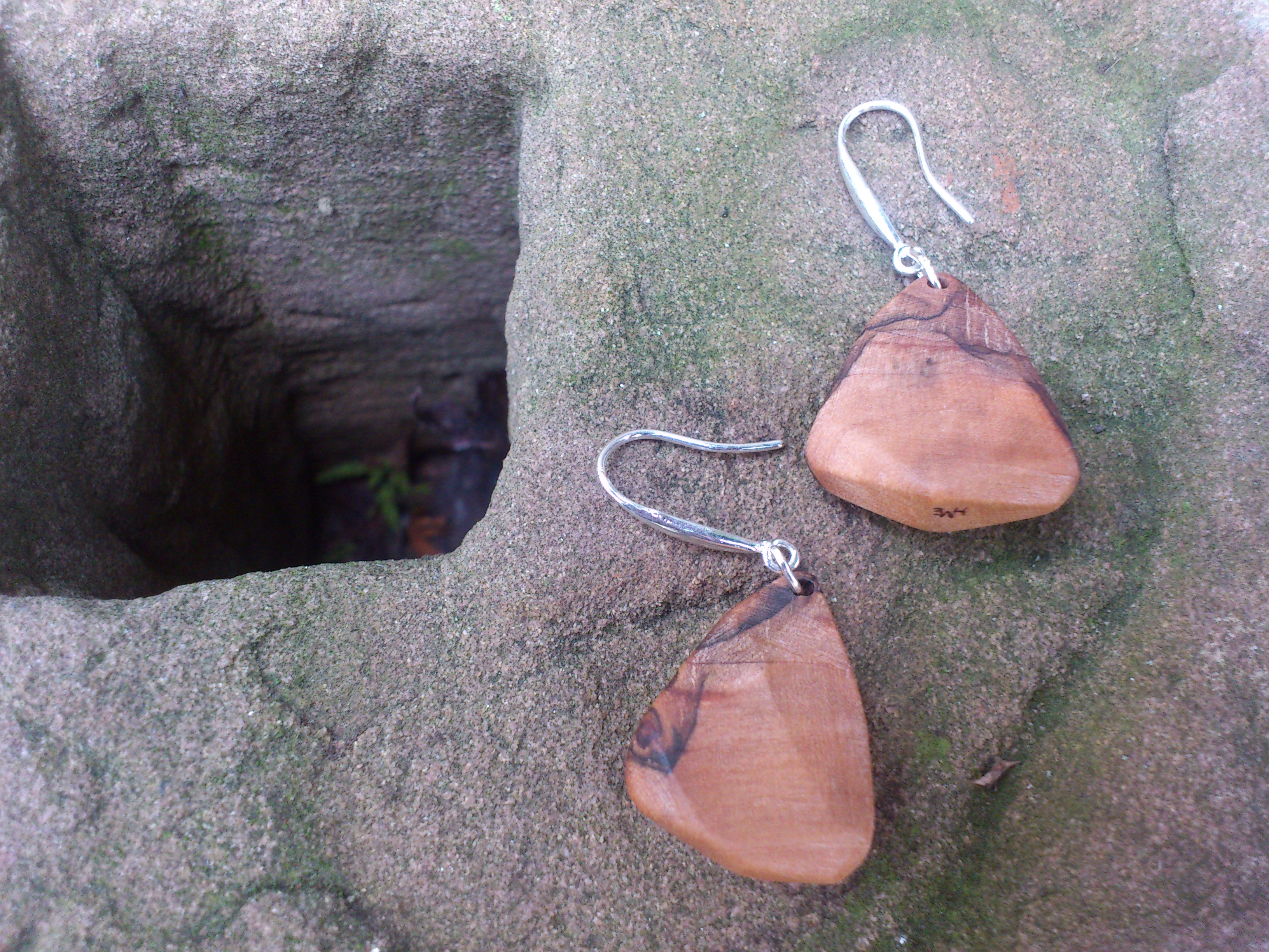 Veröffentlicht inOhrringe aus Buchenholz, sehr schöne dunkle Einschlüsse, geschliffen, poliert und geölt