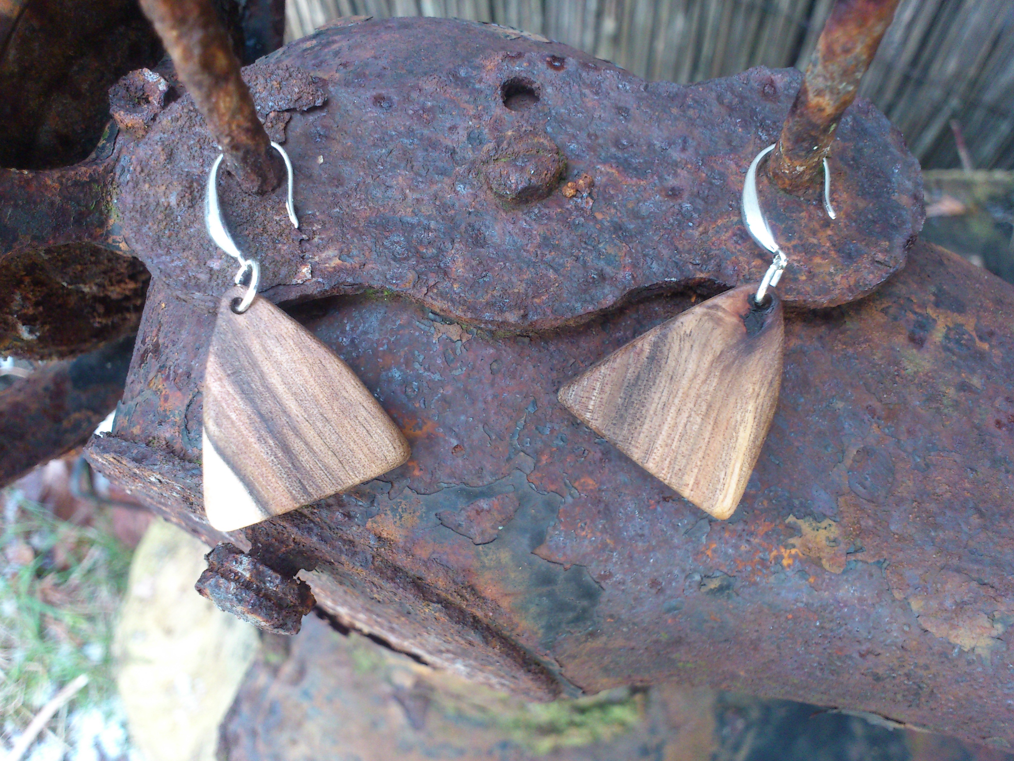 Veröffentlicht inOhrringe aus Walnussholz, geschliffen, poliert und geölt