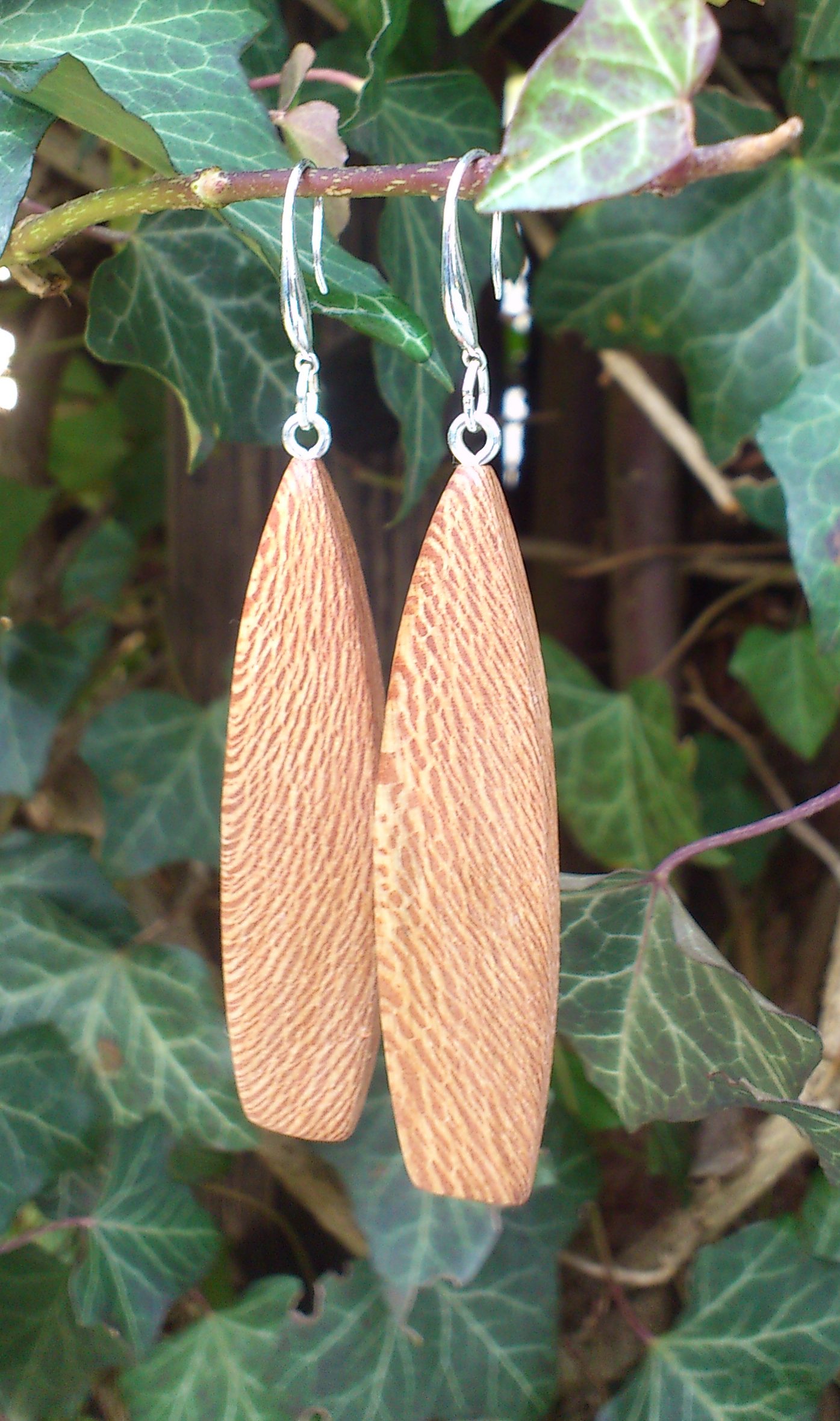 Vorheriges BildNächstes Bild Ohrringe aus Platanenholz, geschliffen und poliert Ohrringe aus Platanenholz, geschliffen und poliert