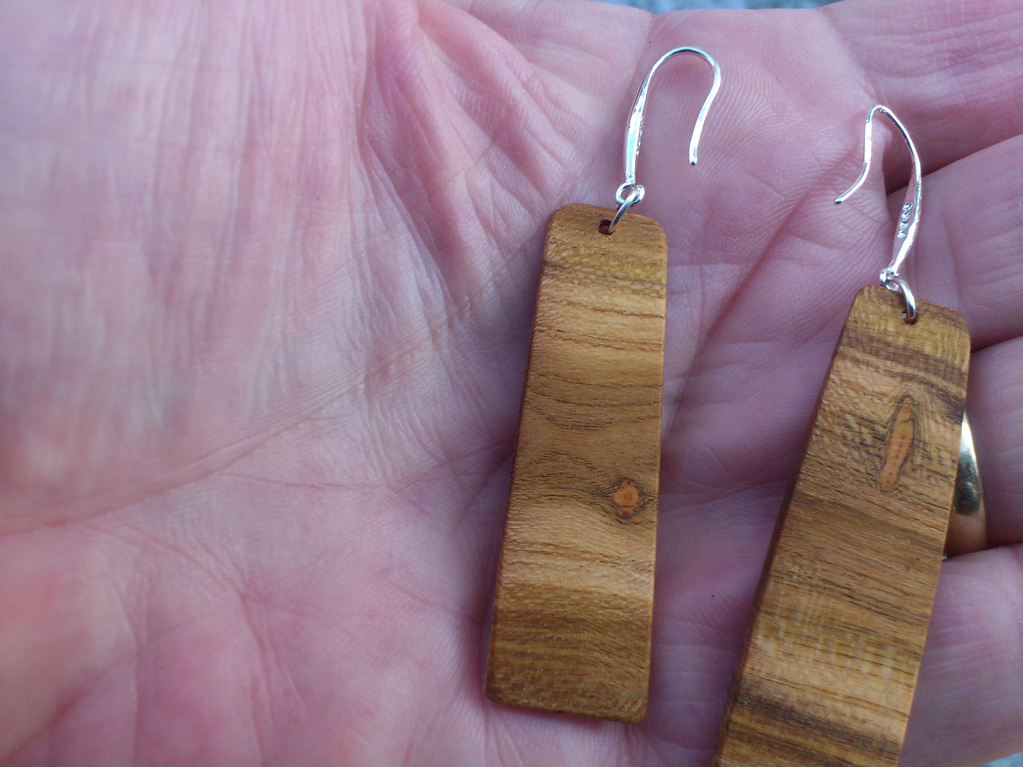 Vorheriges BildNächstes Bild Ohrringe aus geschliffenem und poliertem Pflaumenholz Ohrringe aus geschliffenem und poliertem Pflaumenholz